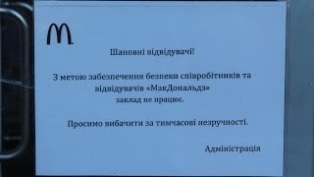 А теперь в трех «Макдональдсах», которые есть в Донецке – темно и пусто: на Крытом, на Южном, а также на площади Ленина. И за закрытыми дверьми нет никого, лишь объявление поясняет – ресторан закрыт, дабу опасности не подвергались посетители и персонал.